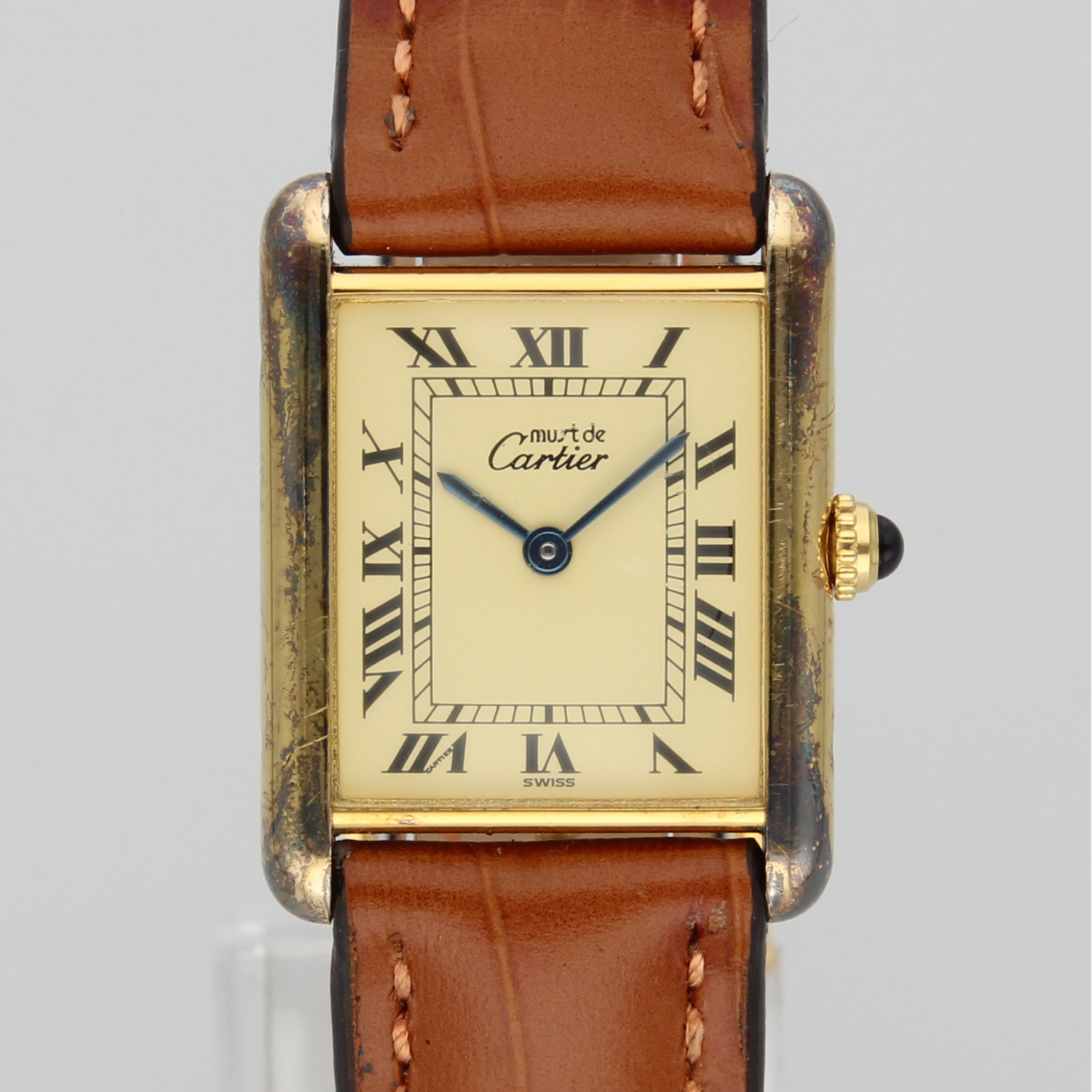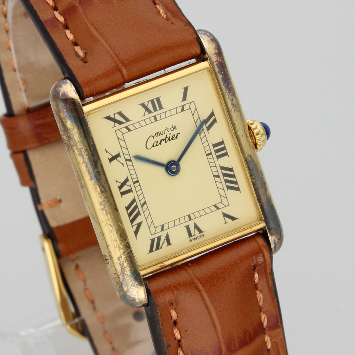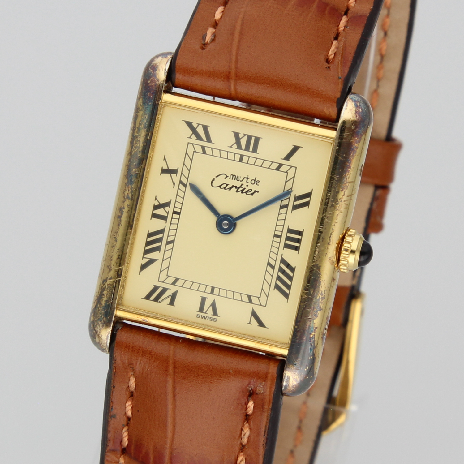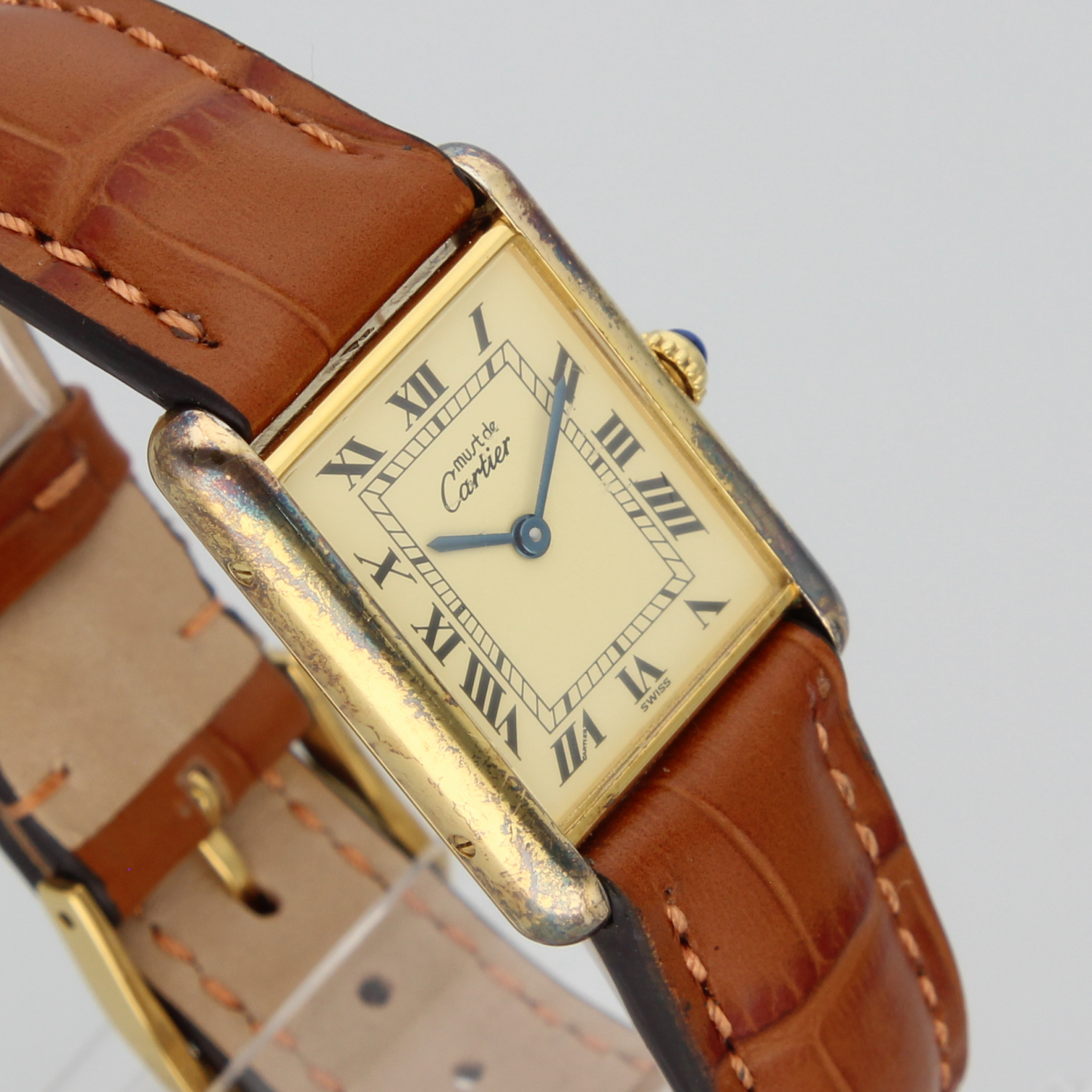 This beautiful Tank features a unique patina that gives the watch extra character. What makes it even more special is that it comes with its original box and papers, something you don’t often see. Check the photos!