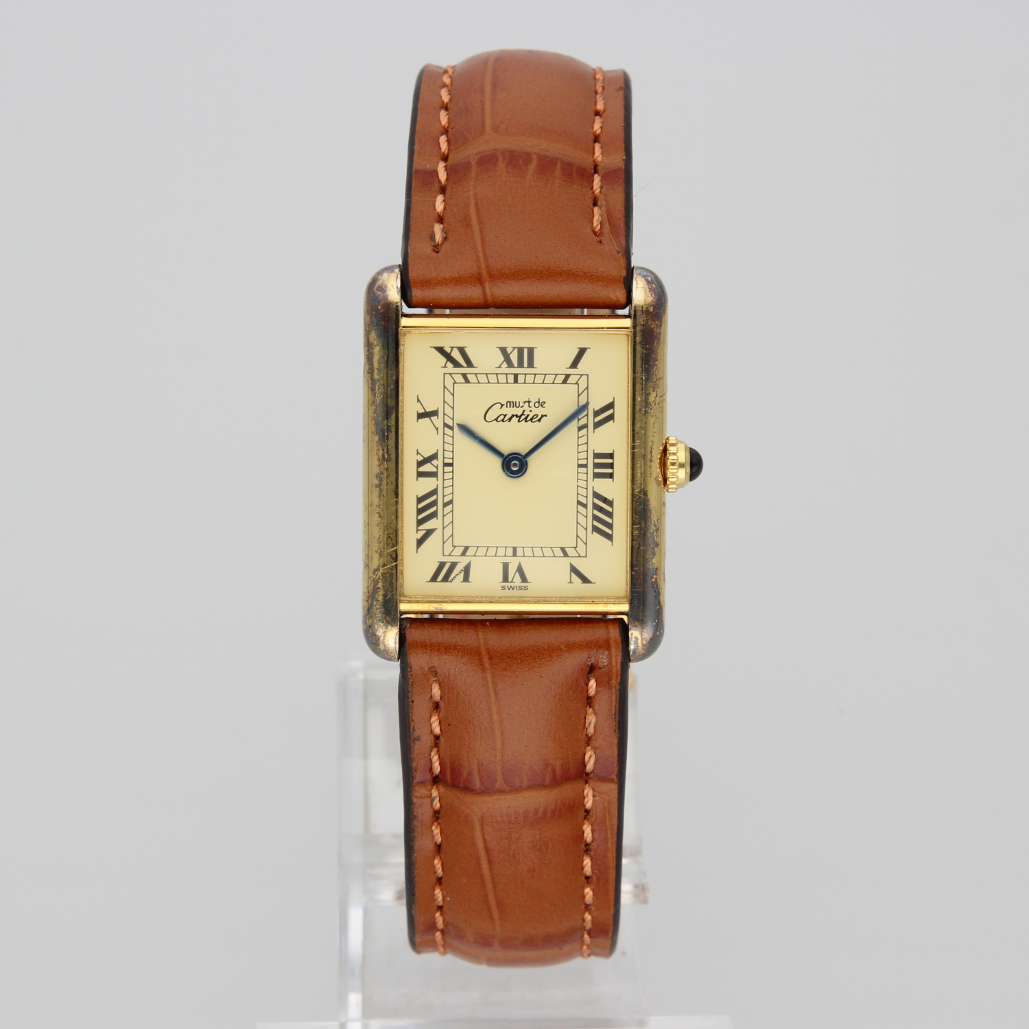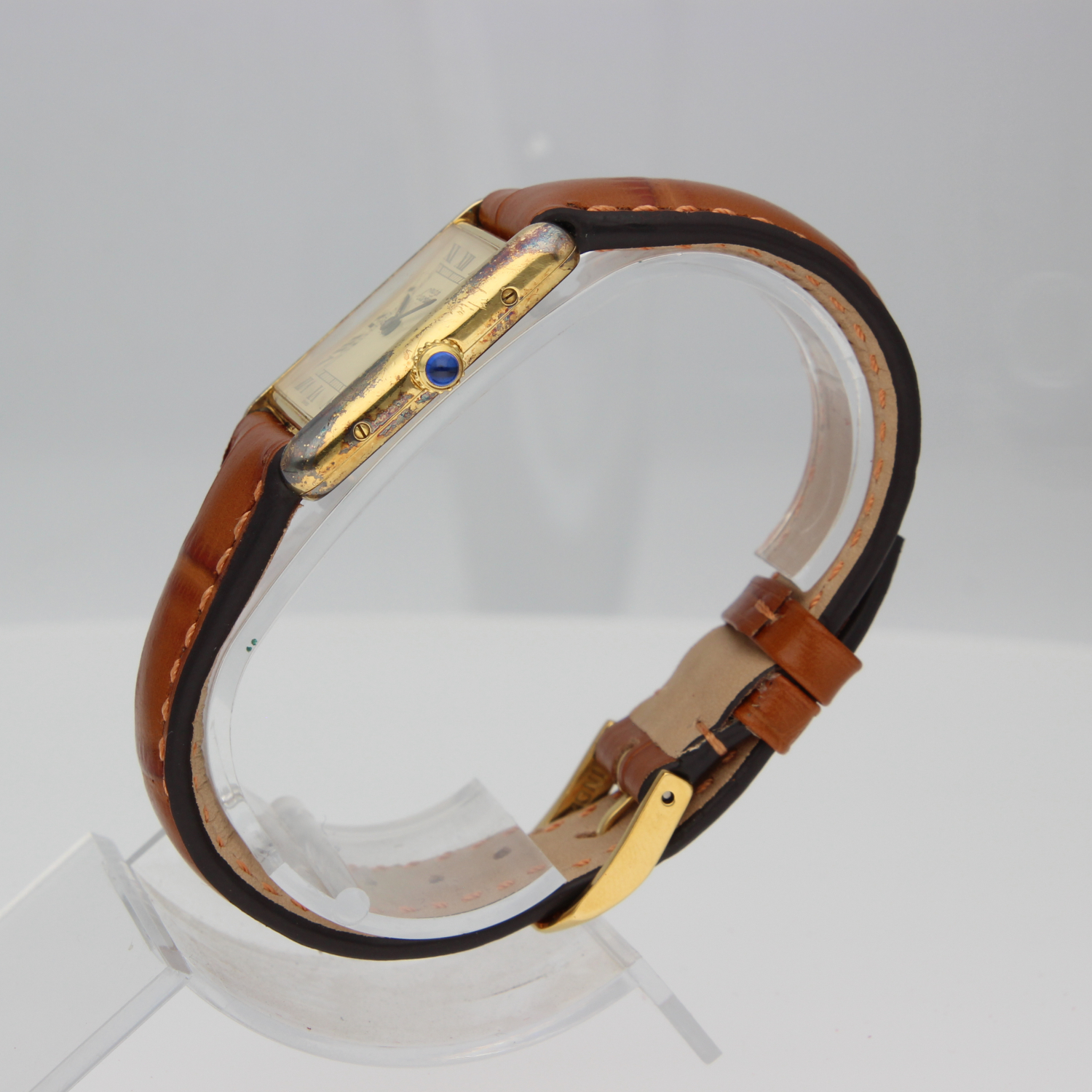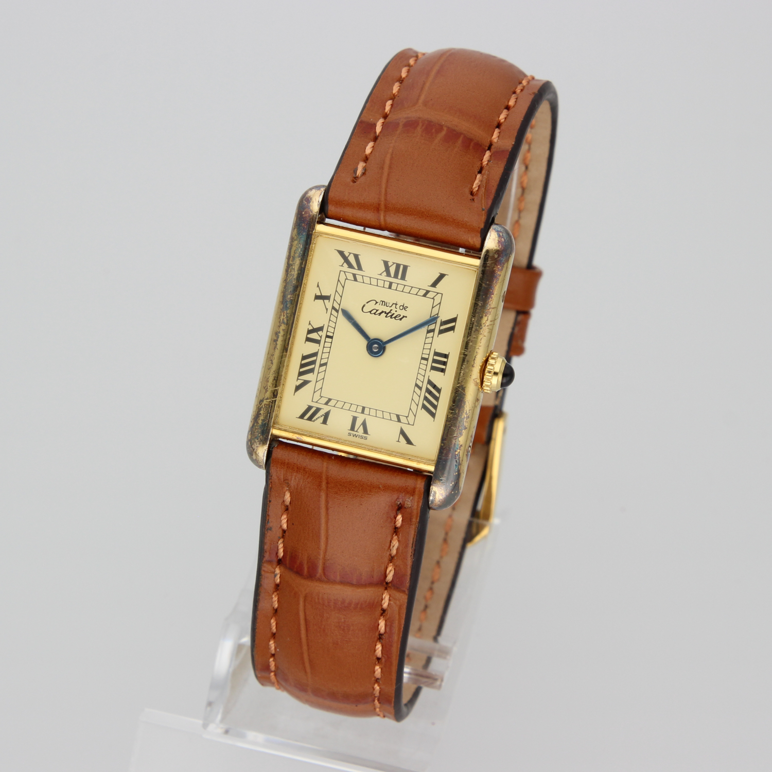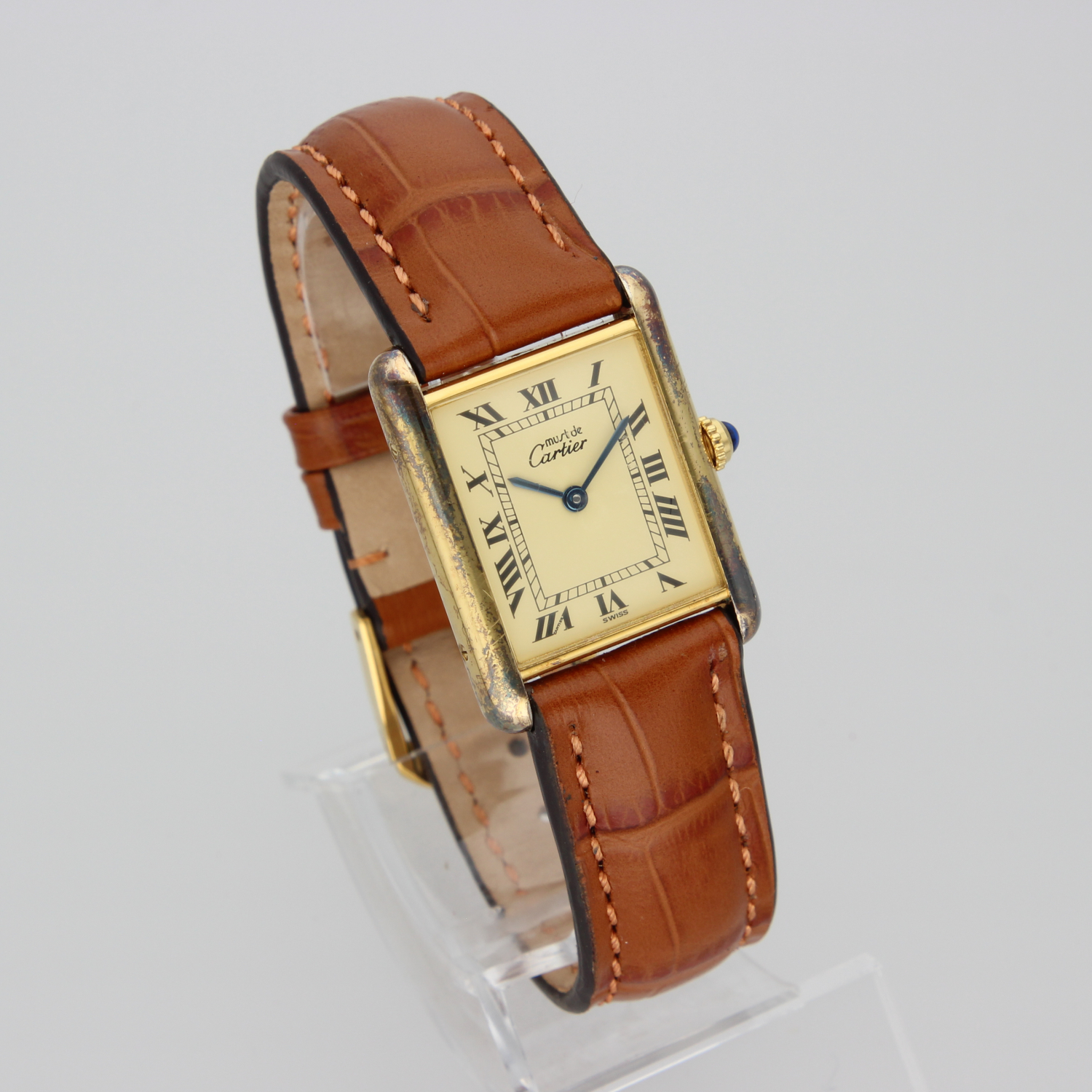 This beautiful Tank features a unique patina that gives the watch extra character. What makes it even more special is that it comes with its original box and papers, something you don’t often see. Check the photos!