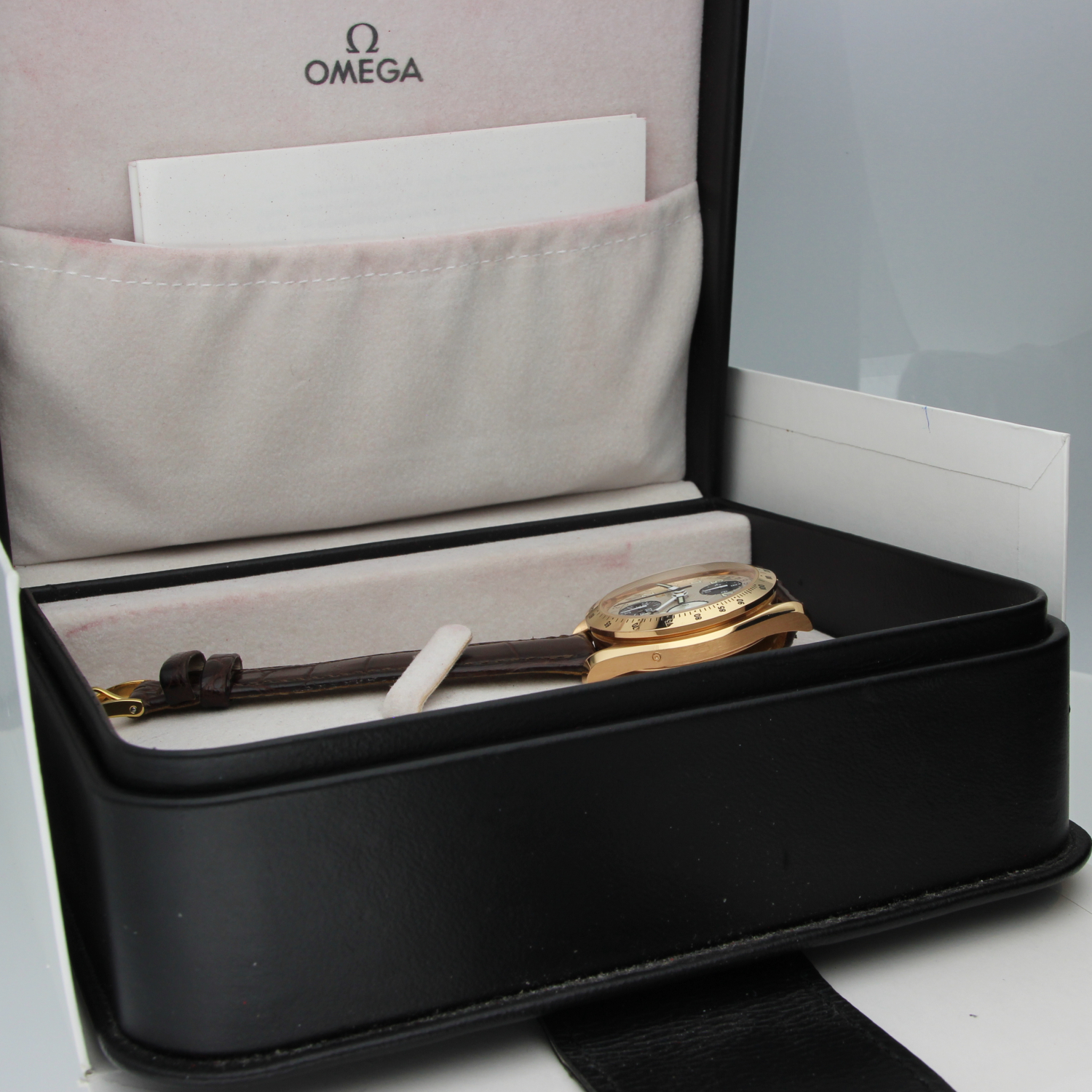 A stunning men’s timepiece crafted in luxurious red gold, the Omega 3623.33.01 features a 39mm case with an 18mm lug width, perfectly balancing presence and wearability. Its silver dial is protected by scratch-resistant sapphire crystal with an anti-reflective coating on the inside, ensuring clarity under all conditions.
